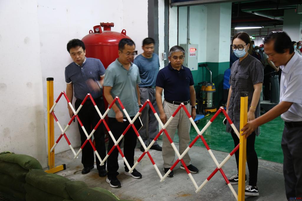 胡金焱現場檢查了浮山校區科技研發大樓地下停車場、浮山校區寧德路、青大路和金家嶺校區科大支路等三個地下人防通道、浮山校區防汛安全應急巡邏點、危化品倉庫、匯園一號學生公寓、浮山校區東院教學實驗樓施工現場、浮山校區慧湖和金家嶺校區劍湖等防汛安全重點區域和部位,并就我校防汛安全工作提出專業防汛、科學防汛、前置防汛三項工作要求。