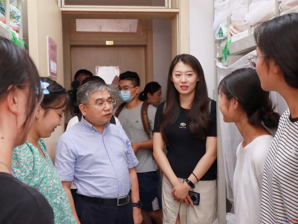 新聞網(wǎng)訊 9月9日下午,校領(lǐng)導(dǎo)到新生宿舍走訪慰問,了解新生學(xué)習(xí)和生活情況,為他們送上學(xué)校的關(guān)心和溫暖。