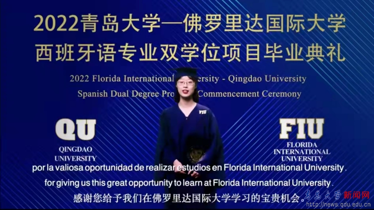 新聞網(wǎng)訊 5月31日,青島大學—佛羅里達國際大學西班牙語專業(yè)雙學位項目第五屆畢業(yè)典禮暨學位授予儀式在云端成功舉辦,外語學院59名中外合作西班牙語畢業(yè)生獲得佛羅里達國際大學學士學位。