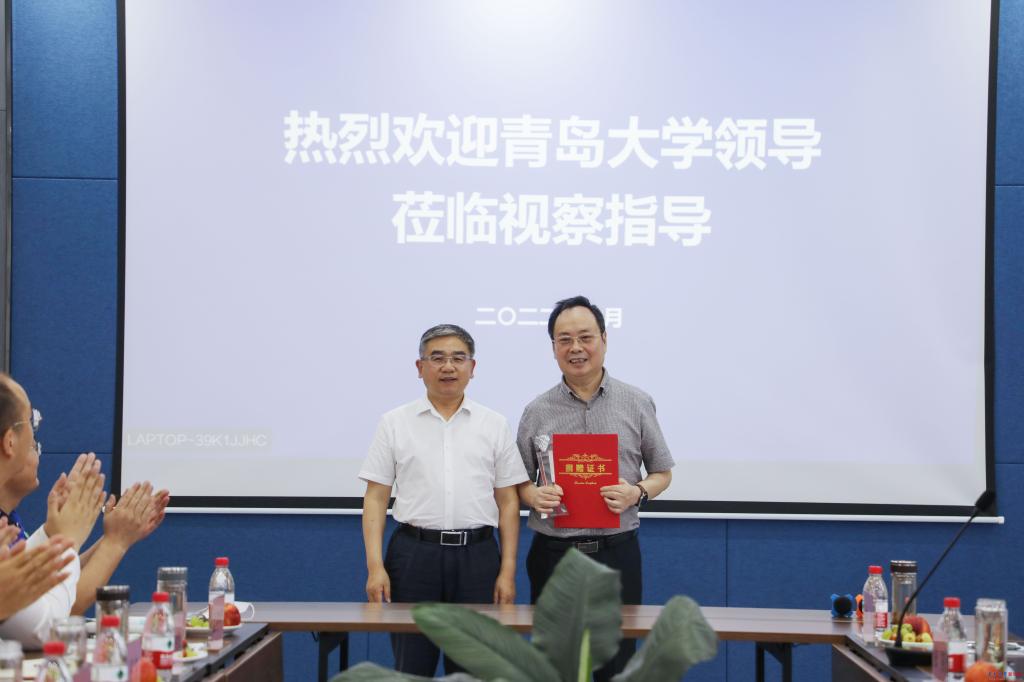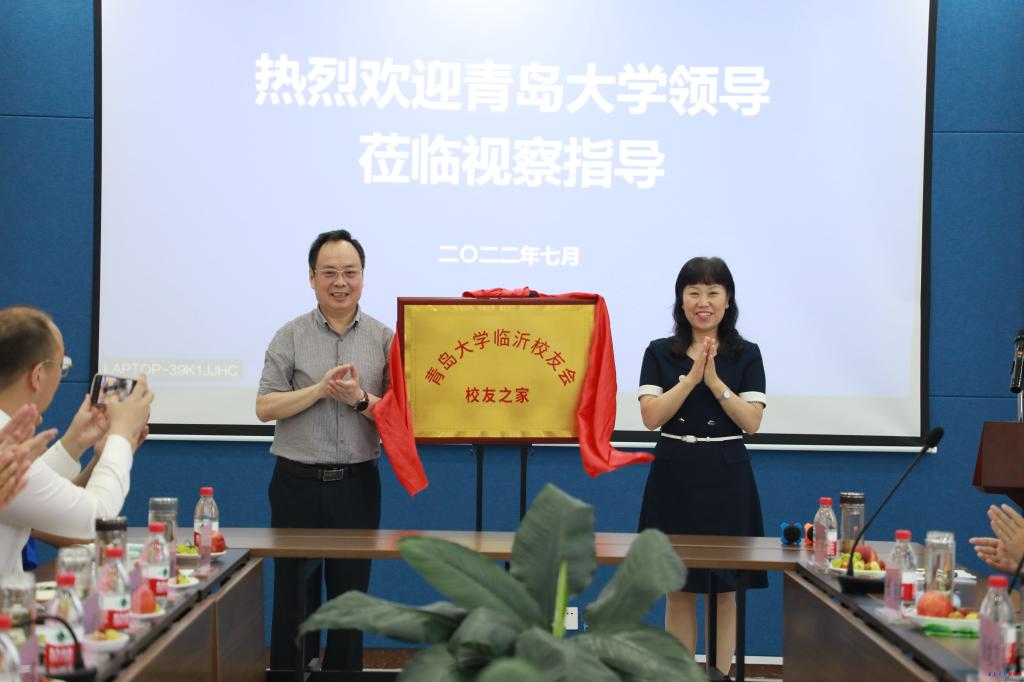 胡金焱一行實地走訪考察了山東魯南眼科醫院、山東直播電商管理集團兩家校友企業,并到裝飾一新的青島大學臨沂校友會看望在臨的青大人。胡金焱向杰出校友高富軍頒發了捐贈證書和獎杯,以表彰其為母校辦學30周年的慷慨捐助;向臨沂校友會執行秘書長王圣宇頒發了臨沂校友會助力母校疫情防控捐贈的證書和獎杯;劉彩云將青島大學校友之家的匾牌授予高富軍會長,標志著青島大學校友會第六個校友之家正式成立。