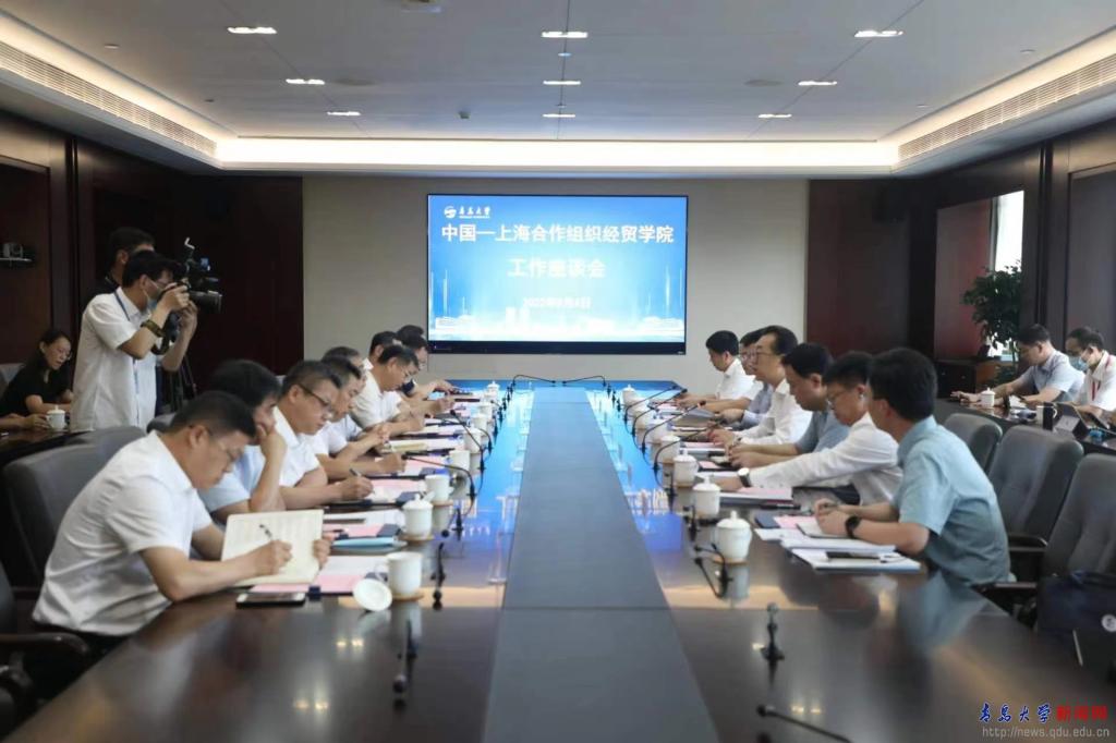 胡金焱對(duì)張新竹一行來(lái)訪表示歡迎,對(duì)膠州市委市政府、上合示范區(qū)對(duì)學(xué)校的大力支持表示感謝。他表示,上合組織經(jīng)貿(mào)學(xué)院建設(shè),是黨和國(guó)家交給我們的重任,上合示范區(qū)作為推進(jìn)主體,青島大學(xué)作為實(shí)施主體,要充分發(fā)揮各自的優(yōu)勢(shì),加強(qiáng)協(xié)作,攜手推進(jìn)學(xué)院高質(zhì)量建設(shè)。要抓好科教產(chǎn)業(yè)園建設(shè)契機(jī),搶抓發(fā)展機(jī)遇,發(fā)揮實(shí)施主體作用,聚焦“人員培訓(xùn)、人才培養(yǎng)、智庫(kù)建設(shè)、科技合作”四個(gè)領(lǐng)域,加強(qiáng)溝通、凝聚智慧,全力打造面向上合組織國(guó)家及“一帶一路”沿線國(guó)家開放合作新平臺(tái)。