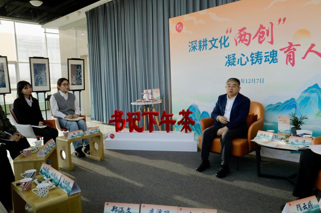 新聞網(wǎng)訊 12月7日下午,學(xué)校舉辦主題為“深耕文化‘兩創(chuàng)’ 凝心鑄魂育人”的第六期“書記下午茶”。校黨委書記胡金焱與12位來自不同專業(yè)不同教育階段的學(xué)生代表共飲熱茶,共話文化擔(dān)當(dāng)。黨委常委、副校長陳濤陪同出席。
