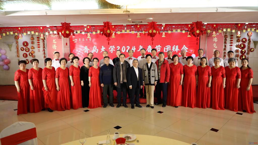 胡金焱首先代表學校向老領導、老專家、老同志、全校師生醫務員工、海內外廣大校友,以及向關心支持青大發展的社會各界朋友,致以節日的問候和新春的祝福。胡金焱指出,2023年是全面貫徹黨的二十大精神的開局之年,也是學校改革發展史上具有重要意義的一年。這一年,學校深入貫徹落實黨的二十大精神,全面落實立德樹人根本任務,聚焦高質量發展首要任務,主動服務和融入國家戰略,加快推進“三個轉變”,實現“九個突破”,在黨的建設、人才培養、學科建設、科學研究、國際交流合作、社會服務等各方面取得了喜人成績,續寫了學校事業發展的新篇章。全體青大人堅守初心,逐夢奮斗,用辛勤和汗水書寫了屬于自己的精彩,這些精彩共同成就了青島大學不斷前進的磅礴力量。