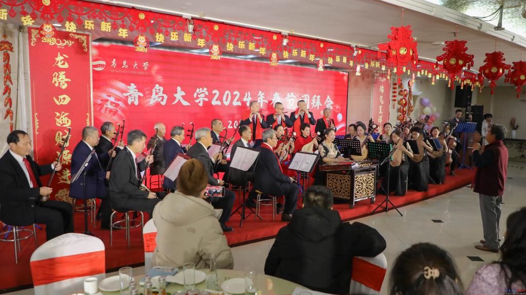 離退休工作處、團委、國際教育學院、音樂學院等單位組織離退休老同志和師生代表帶來精彩紛呈的節目表演,為大家送上真摯的新年祝福,共同表達對美好未來的無限期待。