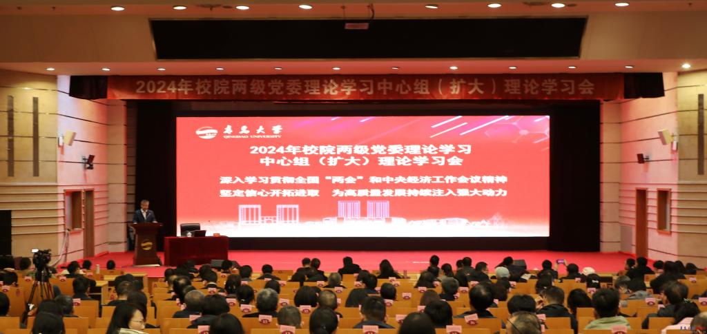 新聞網訊 3月15日,校院兩級黨委理論學習中心組(擴大)舉行聯合學習會,專題學習貫徹全國“兩會”和中央經濟工作會議精神。經濟學家、校黨委書記胡金焱教授作專題輔導報告。校黨委副書記肖江南主持學習會,校領導李軍、陳濤、李榮貴參加學習。