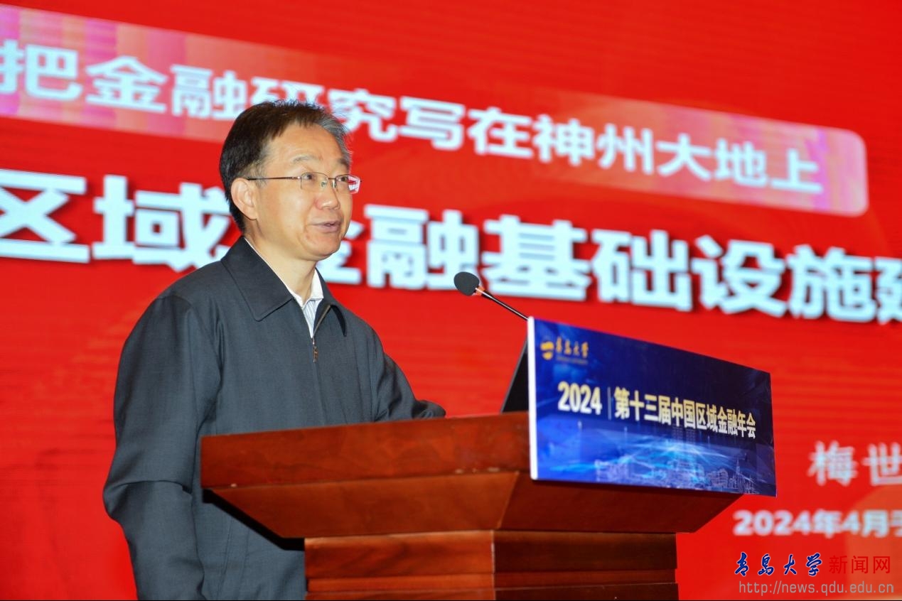 新聞網(wǎng)訊 4月19日至4月20日,由中國區(qū)域金融年會理事會、青島大學和中國區(qū)域經(jīng)濟學會區(qū)域金融專業(yè)委員會聯(lián)合主辦,青島大學經(jīng)濟學院、東北財經(jīng)大學青島金融研究院、青島市金融學會、青島金家?guī)X金融聚集區(qū)管理委員會承辦,《東方論壇—青島大學學報(社會科學版)》協(xié)辦的第十三屆中國區(qū)域金融年會在我校順利召開。校黨委書記胡金焱出席年會并做了題為《簡析做好金融五篇大文章》的主旨演講,副校長李榮貴出席年會致歡迎辭。開幕式由青島大學經(jīng)濟學院院長劉喜華教授主持。