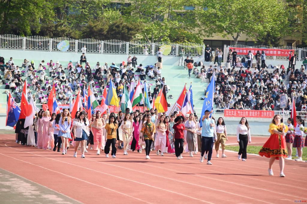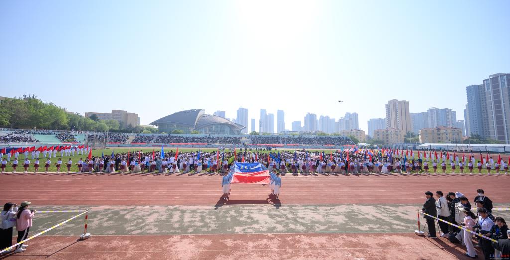 運動員入場式上,國旗護衛隊以及各院(部)方隊,邁著鏗鏘有力的步伐,神采飛揚地走過主席臺,用激情嘹亮的口號和各具特色的表演展現出青大學子激情澎湃、朝氣蓬勃的青春風采。