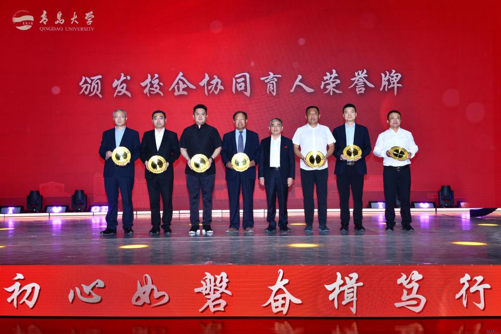 校黨委書記胡金焱為青島中仁健康產業集團有限公司等7家企業頒發“校企協同育人榮譽牌”,充分肯定企業勇擔社會責任,在構建校企人才共育格局上作出的貢獻。校長魏志強為9名獲獎學子的家長頒發“校家協同育人榮譽牌”,對家長與學校同心協力,密切配合,共育英才表示感謝。