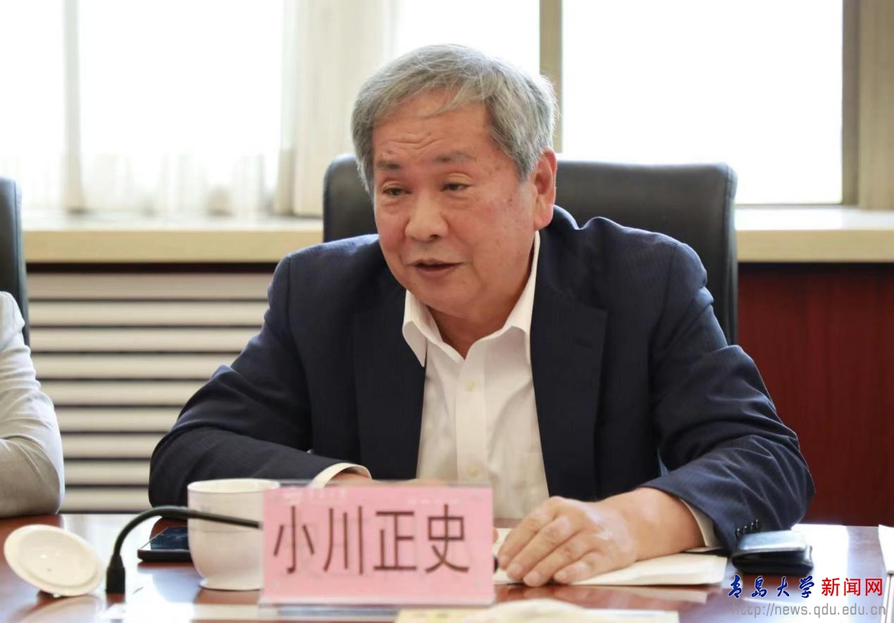 魏志強對小川正史一行到訪青島大學表示歡迎,他指出,日中友好會館自成立以來,積極致力于促進中日文化、教育、青少年交流,為增進兩國人民相互理解和友誼、培養中日友好事業接班人做出了不懈努力。青島是中國與日本交流合作最為密切的城市之一,作為以青島城市命名的大學,青島大學重視對日交流與合作,與日本高校的交流起步早,合作成果顯著。我校早在1985年就開設了日語專業,迄今已有39年的日語教育史。1989年和日本下關市立大學建立了友好合作關系,也是我校首個國外友好院校。目前已與18所日本高校建立了友好關系,合作領域涵蓋教師交流、學分互認、雙學位聯合培養等項目。他表示,擴大對日交流“朋友圈”,構建友好合作“高質量”,是一個重要的命題,希望以小川正史理事長的此次訪問為契機,進一步深化與日本高水平大學在學術科研、師生互訪交流等各方面的合作,為助力地方友城建設和中日關系改善發展,做出更多的貢獻。