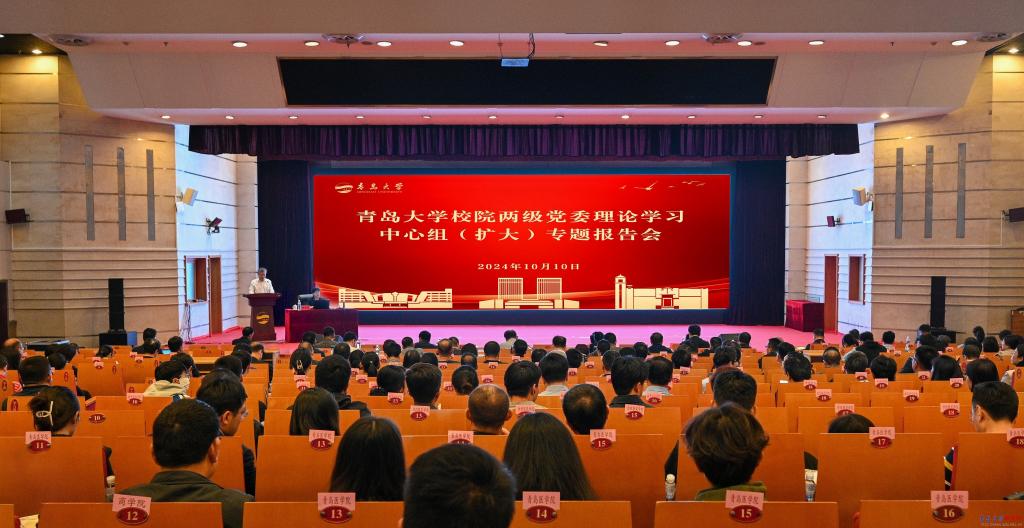 新聞網訊 10月10日,校黨委以“深入學習貫徹習近平文化思想,鞏固馬克思主義在意識形態領域的指導地位”為主題,在國際學術交流中心博學廳舉辦校院兩級黨委理論學習中心組(擴大)專題報告會。校領導胡金焱、魏志強、陳濤、李榮貴、何燕、徐大連、李建波、牛海濤、吳世珍參加學習,校黨委副書記肖江南主持報告會。