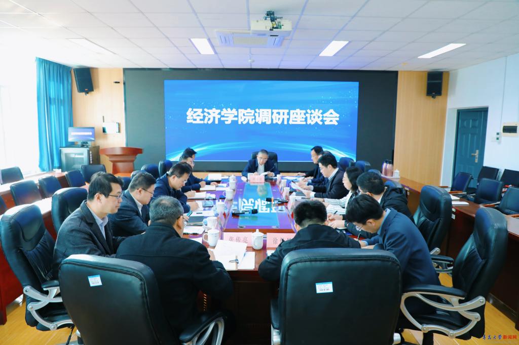 思政課授課前,胡金焱調研了學院工作,并與經濟學院新老領導班子座談交流。在聽取學院工作匯報后,胡金焱對學院近年來取得的成績給予了充分肯定,對以劉喜華同志為代表的上一屆班子做出的突出貢獻表達敬意和感謝,并對學院新領導班子寄予殷切希望。胡金焱指出,經濟學院班子團結、凝聚力強、執行力好,人才隊伍好、學科基礎好、事業發展定位好,新的領導班子成員年輕化、專業化、有活力,要繼續發揮好的傳統,加緊布局如金融學、統計學等有潛力的專業學位博士點建設,持續推動學院辦學實力提升。胡金焱要求,新班子在推動學院發展中還要抓緊補短板,一是要抓高水平學術學科平臺建設,二是要抓高層次人才引育工作,三是要抓高水平學術成果產出,四是要抓服務社會能力提升。胡金焱強調,希望學院在下一步的工作中,繼續發揚昂揚向上的精神,集中力量補短板揚優勢,把每項工作做實做細,為實現學校事業高質量發展再立新功。