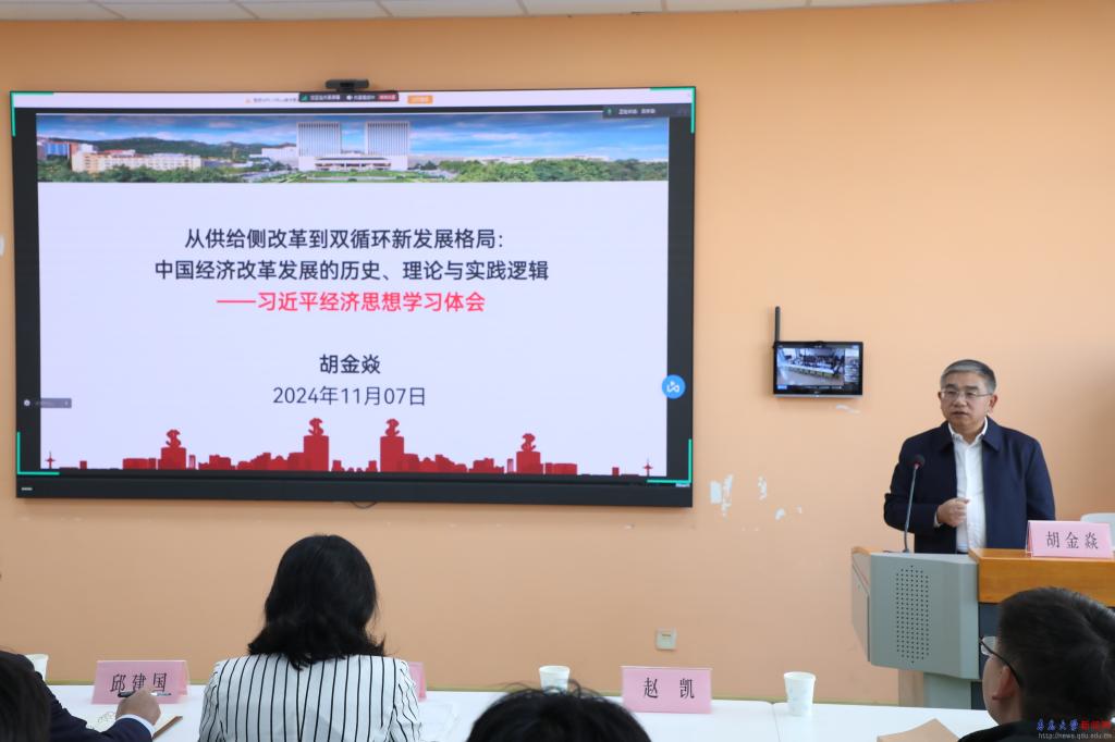 胡金焱深入剖析了當前的經濟形勢,并系統地闡述了習近平新時代中國特色社會主義經濟思想的深刻內涵,為師生帶來了一堂理論實踐結合、深入淺出、生動深刻的思政課,并對青年學子提出了希望和要求。學院師生紛紛表示,新征程上,經濟學院師生將以堅如磐石的信心、只爭朝夕的勁頭、堅韌不拔的毅力助推教育強國建設,為以中國式現代化全面推進強國建設、民族復興偉業貢獻力量。