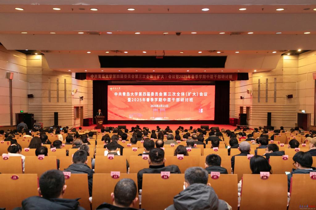 新聞網訊 2月21日下午,學校在國際學術交流中心博學廳召開中共青島大學第四屆委員會第三次全體(擴大)會議暨2025年春季學期中層干部研討班交流總結會。校領導胡金焱、胡欽曉、劉彩云、陳濤、李榮貴、劉恩賢、何燕、李建波、牛海濤、吳世珍、張守珩出席會議。校長魏志強作總結講話,校黨委副書記肖江南主持會議。