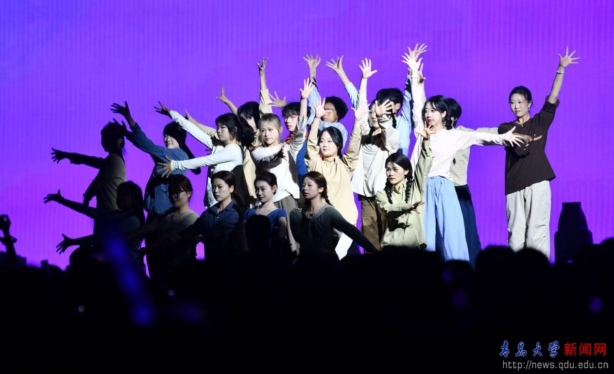 晚會融合了樂團、電聲樂隊、情景演唱、舞蹈、相聲、朗誦等多種精彩表演形式,并與精心設計的服裝走秀相得益彰,打造了一場立體而多元的現場演出。在回憶往昔的時光里,深情的歌聲傳遞了畢業生們難舍的離別之情;在把握當下的青春年華中,堅定的姿態展現了青大青年奮勇向前的青春風采;在展望未來的旅途中,激昂的旋律描繪了新時代青大青年奮發向前的壯志豪情。
