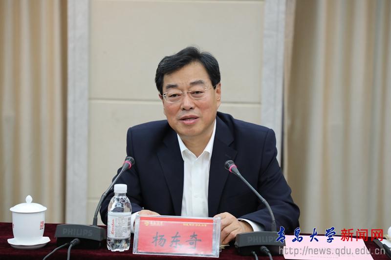 最后,楊東奇就怎樣上好思想政治理論課談了幾點意見。他說,3月18日,習近平總書記在全國學校思想政治理論課教師座談會上提出的“六個要”和“八個相統一”的論述非常重要。6月29日,黨中央印發《中國共產黨宣傳工作條例》,要求把高校思想政治工作擺在突出位置,發揮思想政治理論課主渠道、主陣地作用。10月9日,部屬高校黨的建設和思想政治工作會議召開,會議要求持續推進習近平新時代中國特色社會主義思想進課堂進教材進頭腦。當前學校正在開展“不忘初心、牢記使命”主題教育,青島大學要緊緊圍繞“為黨育人、為國育才”的初心使命,緊扣立德樹人這個根本任務,突出黨的政治建設,健全全員、全過程、全方位育人的體制機制,切實把主題教育的成效,落實到行動中,體現在思政課堂上。省委主題教育第十一巡回指導組要加強指導監督,支持和幫助青島大學把主題教育抓緊抓實抓出成效。具體工作中,青島大學要按照省委教育工委的要求抓好以下幾點:一是堅持正面教育引導,把事實講清。二是堅持理論聯系實際,把道理講實。三是堅持與時俱進,把理論講新。四是堅持改革創新,把形式講活。思政課如此,其他課也是一樣,要講的內涵豐富,形式靈活多樣,要和同學們有思想上的交流,學校要做好教師的培訓,引導老師做一個學生喜歡的老師。