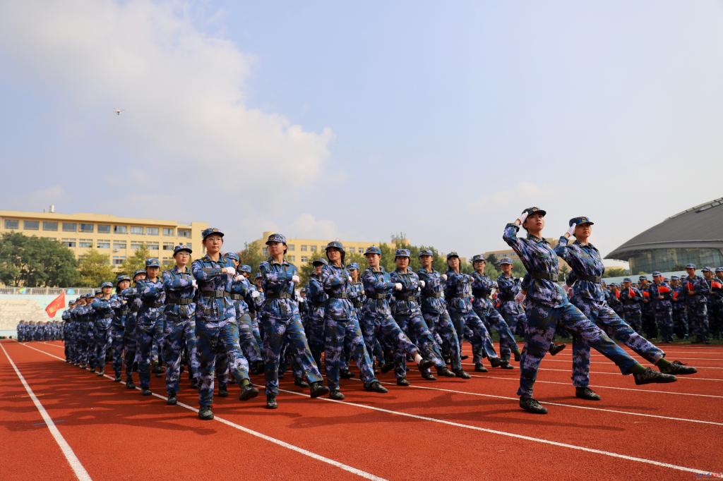 愿以寸心寄華夏,且將歲月贈山河。2020級學生軍訓成果匯報在嘹亮的分列式進行曲中,由新生組成的25個軍訓方隊邁著整齊而堅定的步伐走過主席臺,他們軍容整肅、口號嘹亮,彰顯了新生自強不息、立志報國的壯志豪情;內(nèi)務(wù)整理及緊急集合、女子匕首格斗術(shù)、擒敵拳、戰(zhàn)術(shù)和戰(zhàn)地救護等訓練課目的演示,精彩地體現(xiàn)了軍訓塑造的良好風貌,贏得了現(xiàn)場觀眾的陣陣掌聲。