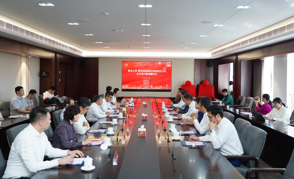 新聞網訊 9月30日上午,青島大學與青島黃海制藥有限責任公司合作簽約暨捐贈儀式在我校舉行。黨委書記胡金焱,黨委常委、副校長于紅波,原校領導邵彬,青島黃海集團董事會主席王澤楷、青島大學86級優秀校友、青島黃海制藥有限責任公司董事長張海英、青島黃海制藥有限責任公司總裁兼黃海醫院投資有限公司總經理劉鳳杰,青島華賽伯曼醫學細胞生物有限公司董事長兼總經理高青,青島萬明賽伯藥業有限公司董事長張萬明等出席儀式。