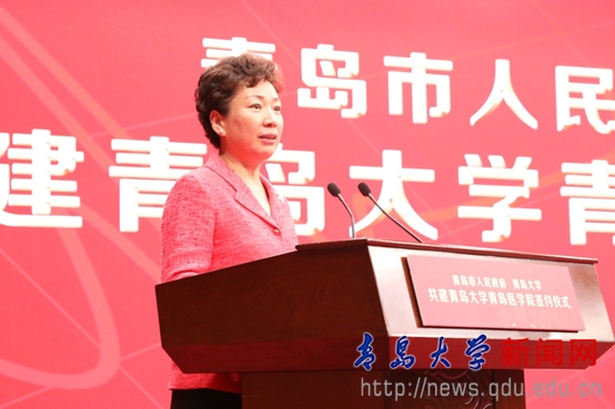 欒新在講話中說,面對醫療衛生體制改革和醫學教育事業發展的新形勢、新機遇、新挑戰,統籌青島醫學醫療資源,做大做強青島醫學教育,實現“組團式”發展,是打造魯東半島醫學醫療中心的必由路徑。青島大學作為半島地區唯一開展高層次醫學教育和高水平醫療服務的綜合大學,青島大學青島醫學院作為我國最早建立的醫學院校之一,擁有一批在國內外具有領先水平的高層次師資和科研隊伍,在科技創新、人才培養、醫療衛生服務等方面取得了一系列突出成果,是魯東半島高水平醫療標桿,為推動青島市經濟社會發展發揮了重要作用。