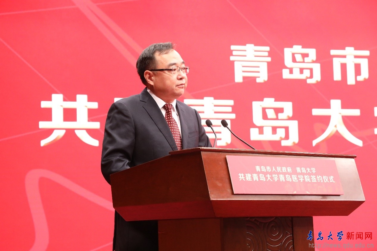 夏東偉在講話時說,作為以青島城市名字命名的綜合大學,青島大學始終堅持立足青島、融入青島、服務青島,把服務青島作為學校的重要使命擔當。“十二五”“十三五”省市共建青島大學以來,在青島市委、市政府的支持下,青島大學各項事業呈現加速度發展的良好態勢。青島市人民政府與青島大學簽署“共建青島大學青島醫學院”戰略合作協議,并將青島7所醫院作為市校共建附屬醫院,這是貫徹落實習近平總書記的要求,增進人民健康福祉的重要舉措,是落實市委市政府“創建國家區域醫療中心,建設長江以北地區一流醫療中心城市”的具體行動,在青島醫學教育和醫療發展史上具有里程碑意義。