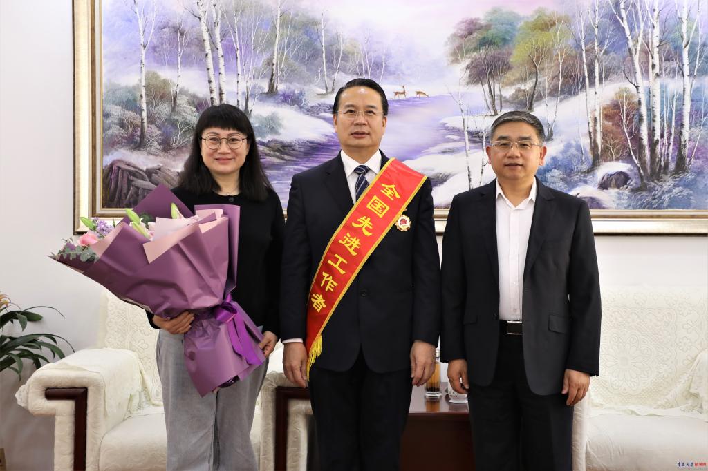 新聞網訊 11月25日上午,校黨委書記胡金焱在辦公樓320接待室會見了剛剛榮獲“全國先進工作者”榮譽稱號的青大附院呼吸與危重癥醫學科主任于文成教授和榮獲“山東省三八紅旗手”榮譽稱號的青大附院產科西海岸病區主任詹瑛教授。