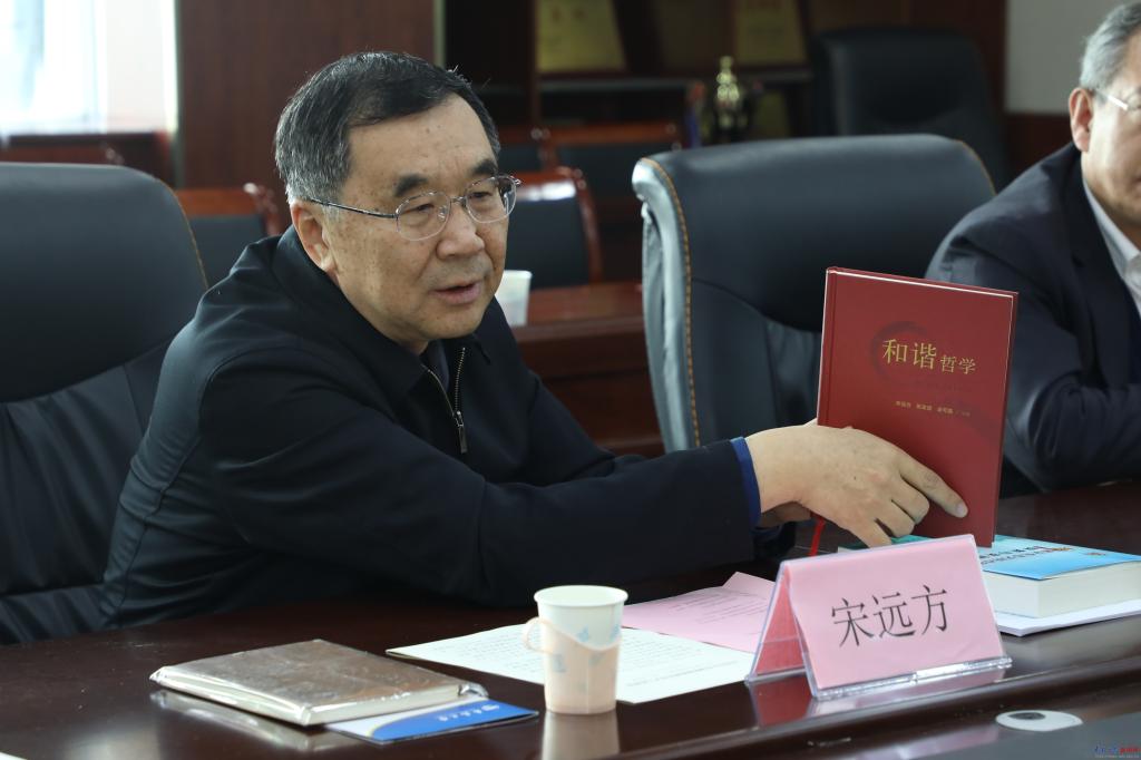 會上,胡金焱對宋遠方一行表示熱烈歡迎,并匯報了學校改革發展的有關做法和成效。他重點介紹了我校人文社科類學科在人才培養、科學研究、師資隊伍、社會服務等方面有關情況,強調需要以博士學位授權點為平臺進一步加強團隊建設、梯隊建設,為未來長遠發展奠定堅實基礎。