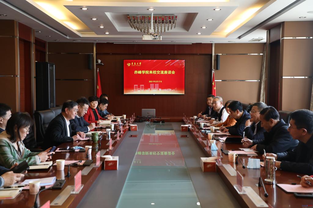 夏東偉代表學校對赤峰學院一行來訪表示歡迎,他簡要介紹了我校概況和近年來事業發展情況,重點介紹了醫學專業設置、人才培養、科研研究和附屬醫院建設等方面的重要舉措和取得的成效,并就綜合性大學辦醫優勢、辦學理念和“醫學+”學科群建設開展的重點工作等進行交流。
