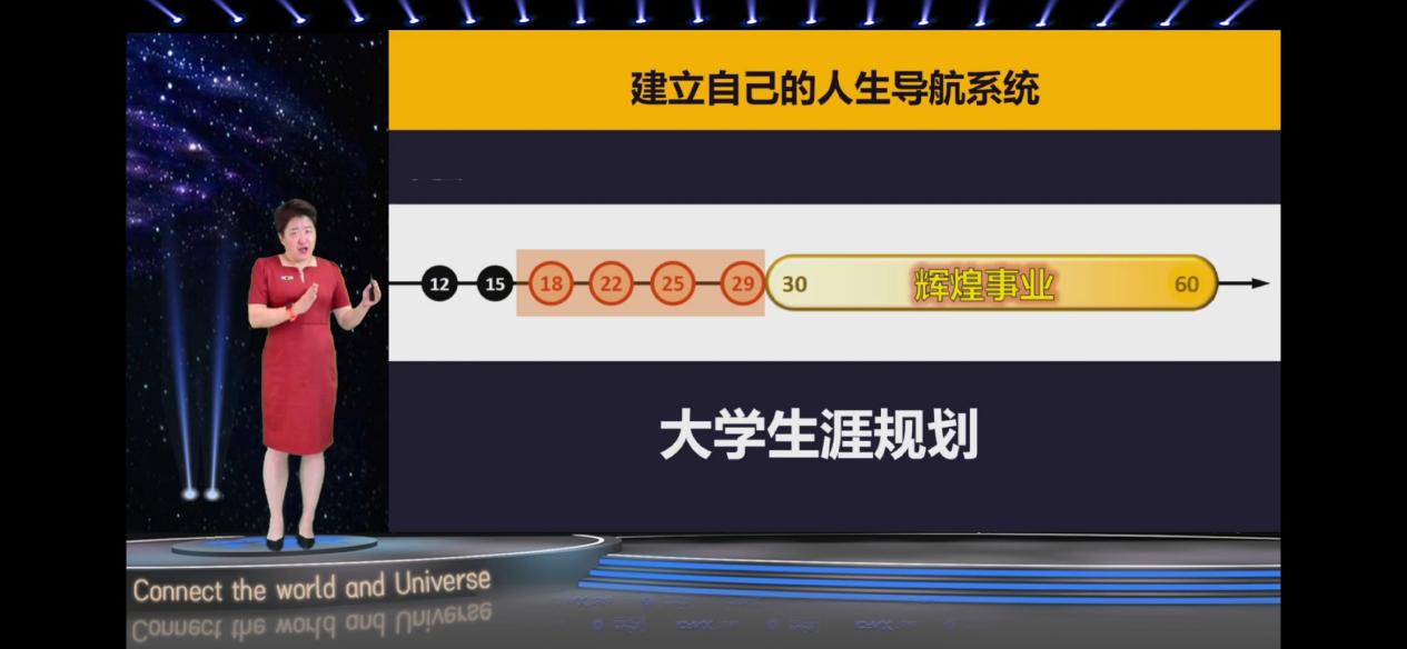張海霞教授以一個在北大親身經歷的故事為起點,根據新生剛來到大學,生活發生巨變的現象,由此提出八個問題:“我是誰”“學什么”“誰管我”“跟誰學”“跟誰玩”“為誰學”“怎么過”“怎么做”來幫助新生們正確過渡到大學生活中。強調大學生涯規劃的重要性,要建立人生的導航系統,正確認識自身的個性特質、樹立明確的職業發展目標與職業理想、增強目的性從而提升成功的機會。大學新生應該在追求理想、感悟體驗生活的基礎上重新定義約束自己,每個人要認真做好人生規劃,讓自己的大學生活更充實,更有意義。