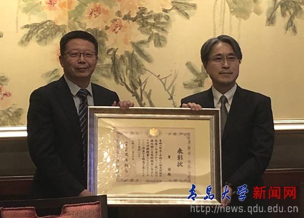 新聞網訊 日前,2021年“日本外務大臣獎”傳達儀式在青島香格里拉大酒店舉行,我校附屬醫院院長董蒨教授榮獲日本政府“外務大臣獎”。日本國駐青島總領事館井川原賢總領事為董蒨教授頒獎。