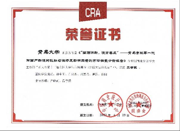 新聞網(wǎng)訊 近日,第十三屆全國大學生市場調查與分析大賽公布了國賽獲獎名單,經濟學院“益菌突起隊”斬獲本科組國賽一等獎,1支本科生團隊和1支研究生團隊分獲國賽二等獎,實現(xiàn)了歷史性突破。此外,還有4支本科生團隊獲得國賽三等獎,4支本科生團隊和1支研究生團隊獲得省賽一等獎,4支本科生團隊獲得省賽二等獎,2支本科生團隊獲得省賽三等獎。指導教師李莉莉榮獲大賽優(yōu)秀指導教師。