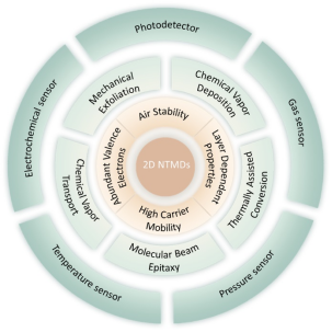 近年來,過渡貴金屬硫族化合物(NTMDs)材料因其以其獨(dú)特的結(jié)構(gòu)和新穎的性質(zhì)引起了人們的廣泛關(guān)注。與大多數(shù)d軌道電子較少的常見過渡金屬硫族化合物(TMDs)不同,NTMDs的d軌道幾乎被完全占據(jù),層間硫原子對(duì)應(yīng)的pz軌道高度雜化,宏觀上表現(xiàn)為更強(qiáng)的層依賴和層間相互作用。文章以二維NTMDs材料獨(dú)特的結(jié)構(gòu)和性質(zhì)為切入點(diǎn),系統(tǒng)地總結(jié)了NTMDs的合成方法,詳細(xì)綜述了其在光電、氣體、壓力和電化學(xué)等多種傳感器領(lǐng)域的應(yīng)用,并對(duì)這種材料面臨的挑戰(zhàn)和未來前景進(jìn)行了總結(jié)。