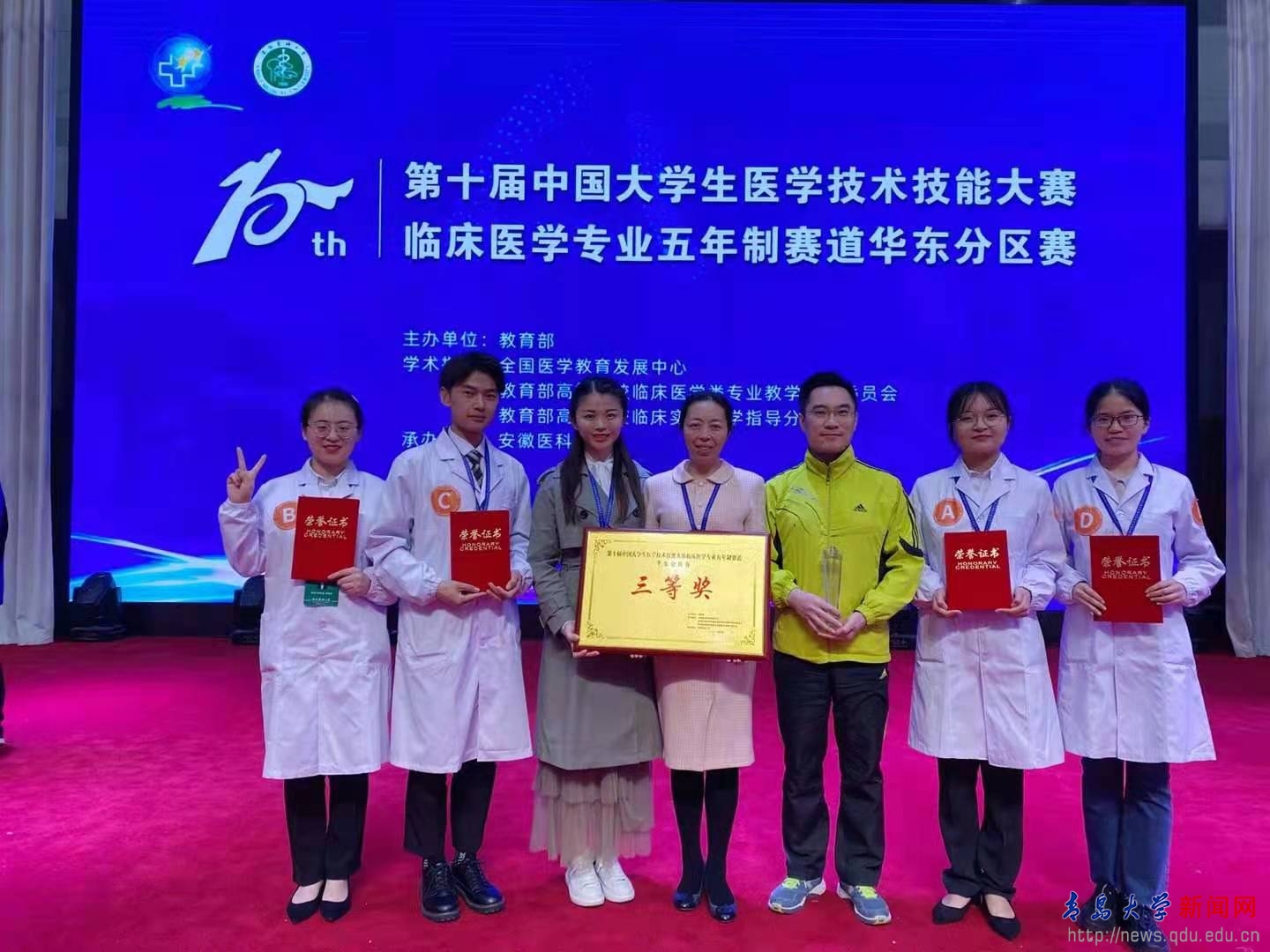 新聞網訊 由國家教育部主辦、安徽醫(yī)科大學承辦的第十屆中國大學生醫(yī)學技術技能大賽臨床醫(yī)學專業(yè)五年制賽道華東分區(qū)賽于4月9日至11日在安徽醫(yī)科大學舉行。我校臨床醫(yī)學專業(yè)代表隊榮獲團體三等獎。