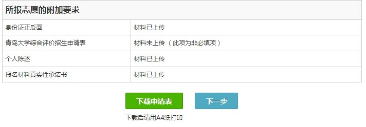 4.青島大學綜合評價招生申請表(系統設置為非必填項,但必須上傳)