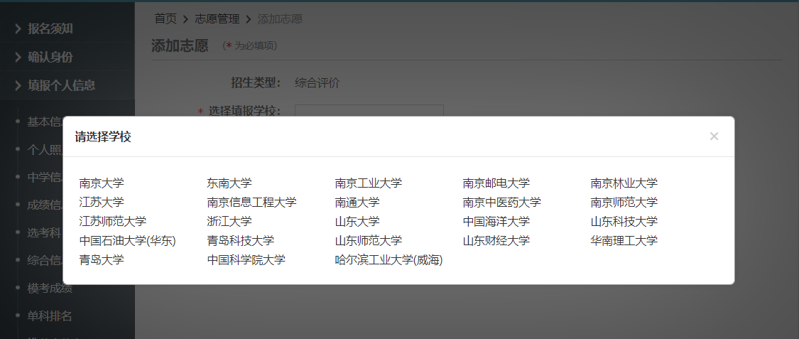 點擊“志愿管理”后,再點擊“添加志愿”,選擇點擊“青島大學”