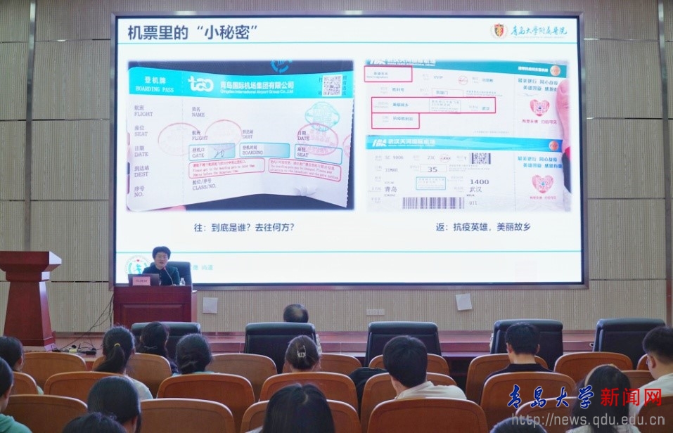 從一張?zhí)厥獾娘w機(jī)票開始,魏麗麗教授講述了青大護(hù)理人在抗擊新冠肺炎疫情期間臨危不懼、視死如歸,困難面前豁得出、關(guān)鍵時(shí)刻沖得上,以生命赴使命,用大愛護(hù)眾生的一幕幕、一件件感人故事。這些事跡彰顯了醫(yī)護(hù)人員身先士卒,舍己為人的奉獻(xiàn)精神;堅(jiān)守崗位,向陽(yáng)而生的樂觀精神;互助友愛,溫馨和睦的團(tuán)隊(duì)精神,更昭示了中國(guó)共產(chǎn)黨的偉大、社會(huì)主義制度的優(yōu)越。