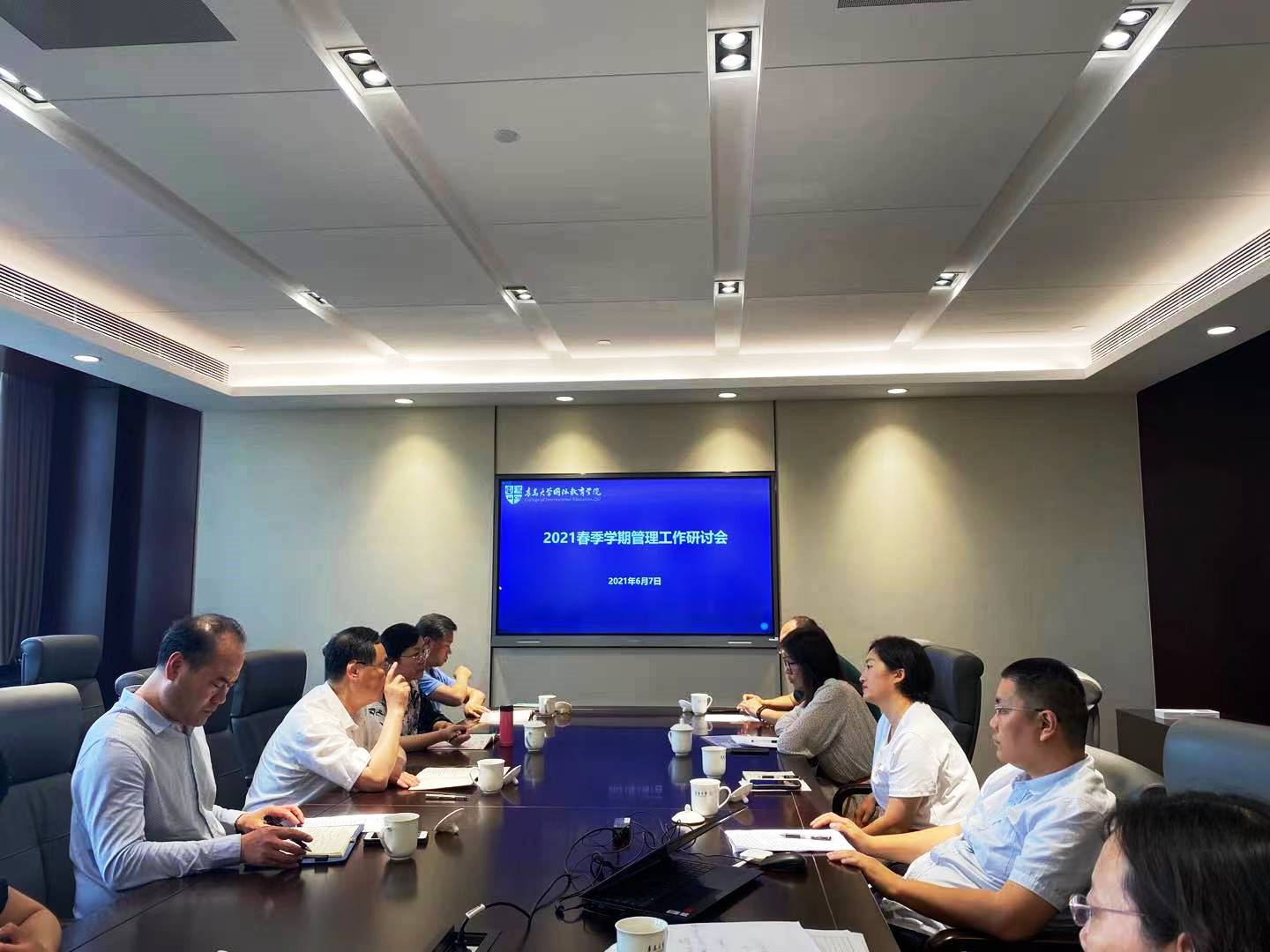 新聞網訊 近日,國際教育學院在會議中心301會議室召開了2021年春季學期管理工作研討會。校黨委常委、副校長李軍出席研討會,對學院下一步工作提出要求,并對學院理論中心組學習進行了督導。國際教育學院院長汪運波主持研討會。