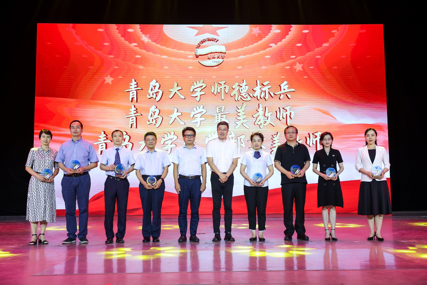 會上向獲得“山東省教書育人楷模”及青島市”教學名師“、“最美志愿者”,青島大學“優(yōu)秀教師”“師德標兵”“最美教師”“優(yōu)秀教育工作者”“服務(wù)育人先進個人”“優(yōu)秀青年工作者””優(yōu)秀輔導(dǎo)員“”輔導(dǎo)員年度人物“”第五屆十佳班主任“”優(yōu)秀班主任“”教學能手“”教學管理先進工作者“,醫(yī)學部“優(yōu)秀教師”“最美教師”“優(yōu)秀教師”“服務(wù)育人先進個人”及醫(yī)學部第十二屆中青年教師教學大賽和第九屆中青年教師英語授課大賽一、二等獎獲獎老師進行頒獎。