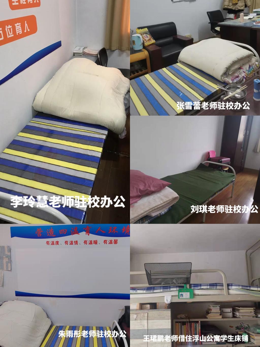 接到封校指令后,學院值守老師們安頓好孩子,備好行裝,駐扎進校,每天吃住在辦公室。王珺鵬老師更是臨時受命成為浮山公寓的“副區長”,住在學生宿舍,成為學生的“定心丸”。