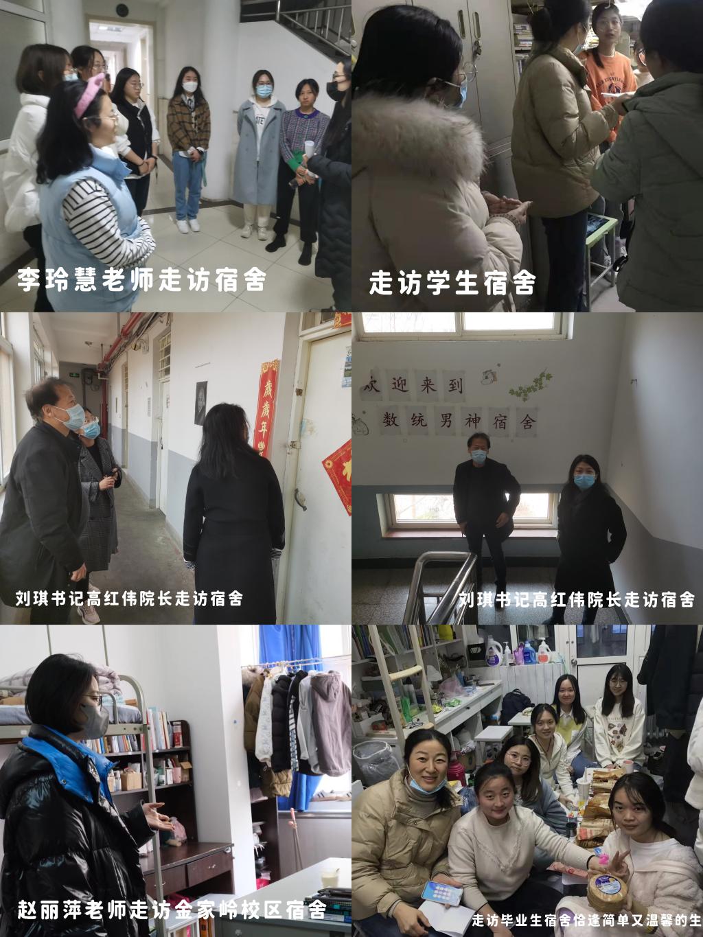 學院領導、輔導員深入學生宿舍,關心問候,親切交談,為學生送去抗疫的精神力量。編寫發布學院學工人員抗疫工作明白紙、數統學子抗疫明白紙,傳達了學校疫情防控規定,耐心細致叮囑同學們戴好口罩,特殊時期不外賣不網購。走訪畢業班學生宿舍時,與畢業班學生就學業、考研以及畢業論文進展進行重點交流,鼓勵大家以良好心態迎接復試和求職面試。疫情當前,復試指導、就業指導,各場講座,一切如常,沒有放下。