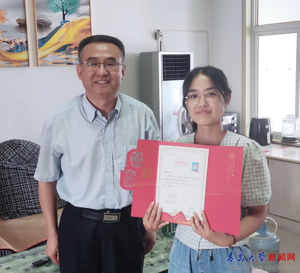 新聞網(wǎng)訊 8月3日上午,師范學(xué)院黨委書記尹增剛一行來到平度市南村鎮(zhèn)東王府莊村,將校長夏東偉教授親筆簽發(fā)的錄取通知書送到2022級學(xué)前教育專業(yè)公費師范生蔣雯麗同學(xué)手中。這是我校送達(dá)的2022年第一份本科生錄取通知書。學(xué)院領(lǐng)導(dǎo)變身“郵差”,送去的不僅僅是錄取通知書,還有學(xué)校學(xué)院對莘莘學(xué)子的殷切關(guān)懷和期待,為考取我校的新同學(xué)上了一堂生動的“新生第一課”。