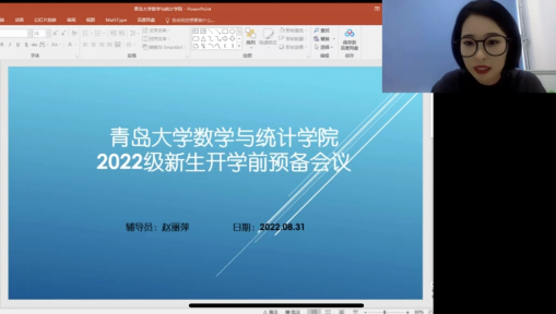 正當年華,共赴新程——2022級新生開學預備會議。8月31日,學院2022級本科生輔導員趙麗萍線上召開新生開學預備會議。會議中,趙麗萍向加入我院的全體新生表示熱烈歡迎,隨后就疫情防控狀態下落實好新生暫緩報到政策及具體返校流程問題做出詳細說明。