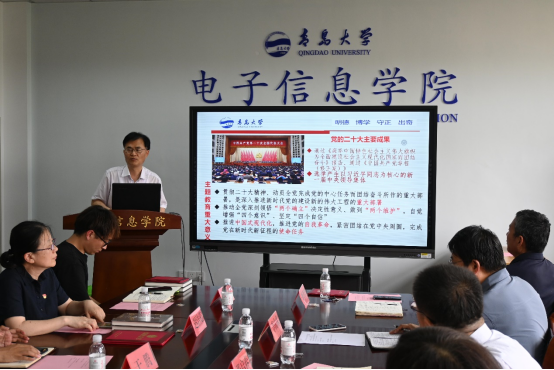 新聞網訊 6月29日下午,電子信息學院在誠思樓407會議室召開慶“七一”表彰座談會暨書記講黨課活動,校主題教育督導組組長李升學出席會議,院系班子成員、教師黨員、學生黨員代表以及受表彰全體師生參會。