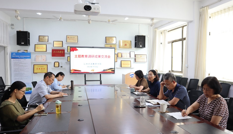 新聞網(wǎng)訊 7月25日下午,公共外語教育學(xué)院召開學(xué)習(xí)貫徹習(xí)近平新時代中國特色社會主義思想主題教育調(diào)研成果交流會。學(xué)院領(lǐng)導(dǎo)班子成員、黨支部書記、教研室主任代表參加會議。會議由學(xué)院黨委書記劉海榮主持。