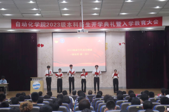 新聞網訊 9月21日下午,自動化學院2023級本科生開學典禮暨入學教育大會在金家嶺校區圖文中心四樓報告廳舉行。學院黨委書記張新柏以及各分管領導、班主任代表、各年級輔導員及2023級全體新生參加,典禮由學院黨委副書記于宏主持。