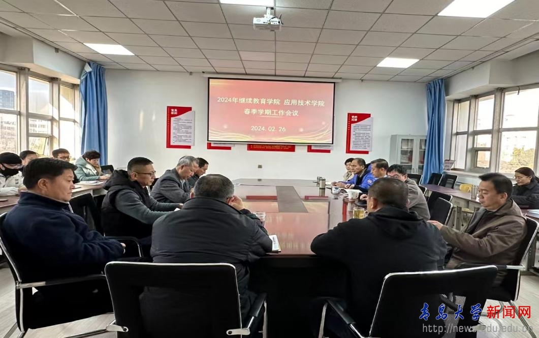 新聞網訊 2月26日,應用技術學院、繼續教育學院在金家嶺校區行正樓310會議室召開2024年春季學期工作會議,會議采取部門匯報、領導點評方式。各部門負責人就部門2023年工作總結和2024年工作計劃做了匯報,分管領導分別進行點評。學院院長耿寶福報告了全院總體工作,學院黨委書記宋佐東參加會議并講話。