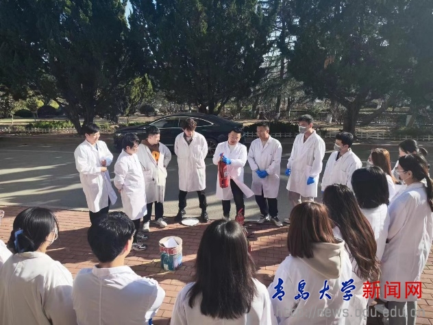 會后,實驗室組織進行了安全衛生大檢查,對個別課題組插排亂放以及垃圾桶清理不及時等安全衛生問題現場提出整改意見。隨后開展了消防演練,組織研一學生學習了滅火器使用方法并進行了滅火的現場實操演練,進一步提升了實驗室的火災應急處置能力。