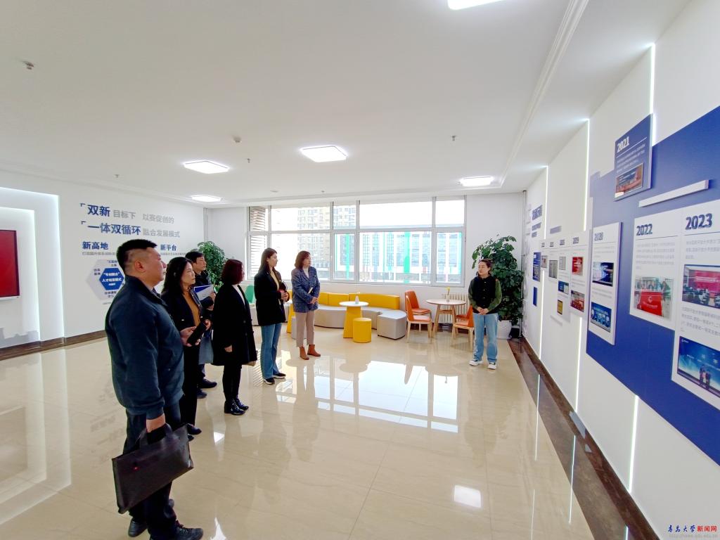 座談結束后國際教育學院一行參觀了青島開放大學社區教育學院的茶藝、古箏、書法、剪紙、油畫教室,并在青島開放大學創業學院老師的帶領下參觀了課件中心、路演教室、創客空間和創新創業成果展覽。