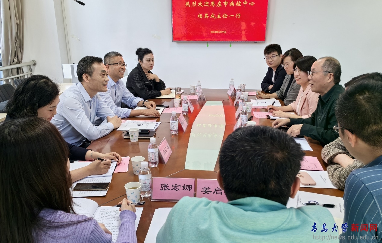 楊其成介紹了棗莊市疾控中心的基本情況,并對我院在項目申報過程中給予的支持表示衷心感謝。他希望在做好國家試點項目的同時,借助學院的專業優勢,助力棗莊疾控在區域特色方面的發展。