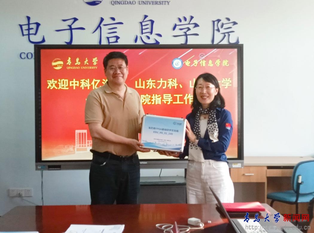 新聞網訊 6月15日下午,中科億海微濟南分公司副總經理張音、山東力科電子科技總經理孟祥龍、山東大學王卿璞教授等一行到電子信息學院考察交流。學院院長李山東、院長助理姚釗、教師代表鞠誠參加了座談交流。