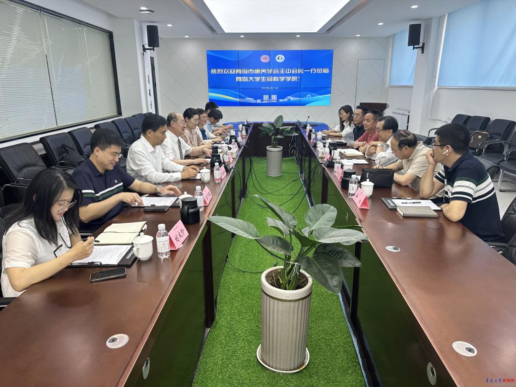 王中感謝青島大學生命科學學院長期以來對青島市康養學會工作的鼎力支持,對學院在生物醫藥、高效農業以及功能食品開發等研究領域取得的豐碩成果給予了高度肯定。王中表示,學會自成立以來,聚焦學術研究、決策咨詢、助力企業、服務百姓四大職能和“讓生命之樹常青”的發展愿景以及面向全領域、全人群、全生命周期的“三全”發展理念,力爭把學會建設成為康養智力資源的聚集地、康養學術研究的新平臺、助力康養發展的生力軍。希望雙方建立廣泛的溝通渠道,開展深度的合作交流,聯合打造“政產學研金服用”發展合作平臺,共同為青島康養事業的發展賦能聚力。