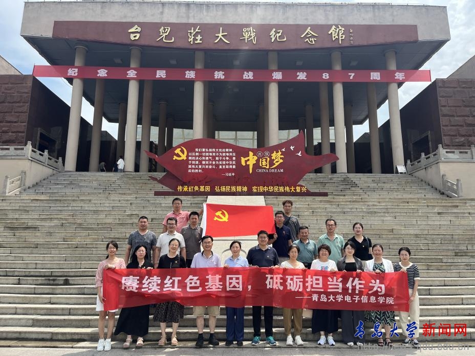 新聞網訊 為提高教工黨員黨性意識,傳承革命基因,讓紅色成為立德樹人的鮮亮底色,成為教師汲取鑄魂育人的前進力量。近日,電子信息學院赴棗莊、臨沂兩地開展主題為“賡續紅色基因,砥礪擔當作為”的教工黨建活動。院黨委書記孫麗娜,院黨委副書記、院長李山東以及20余名教工黨員赴棗莊市和臨沂市開展黨性教育和文化教育。